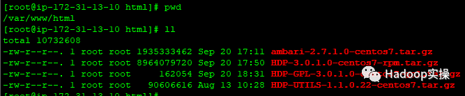 3.将Ambari和HDP相关的安装包下载到/var/www/html目录,并解压,解压完毕后删除原始gz压缩文件。