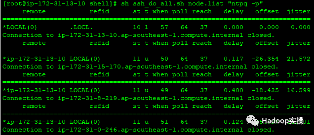 [root@ ip-172-31-13-10 shell]# sh ssh_do_all.sh node.list "ntpq -p"