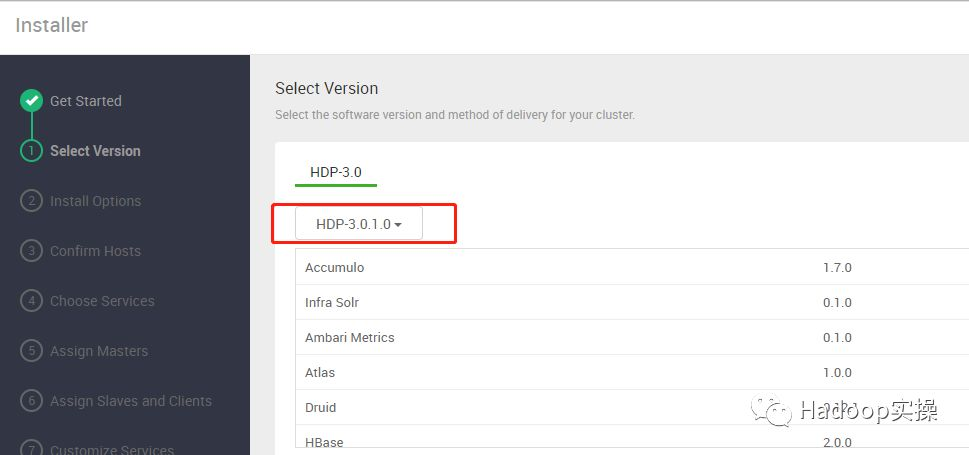 3.选择HDP版本3.0.1