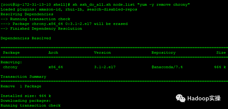 [root@ip-172-31-13-10 shell]# sh ssh_do_all.sh node.list "yum -y remove chrony"