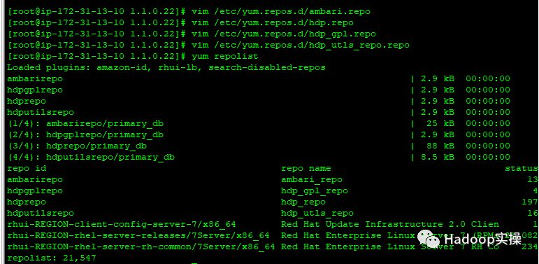 [root@ip-172-31-13-10 ~]# vim /etc/yum.repos.d/hdp.repo