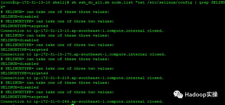 [root@ip-172-31-13-10 shell]# sh ssh_do_all.sh node.list "setenforce 0"