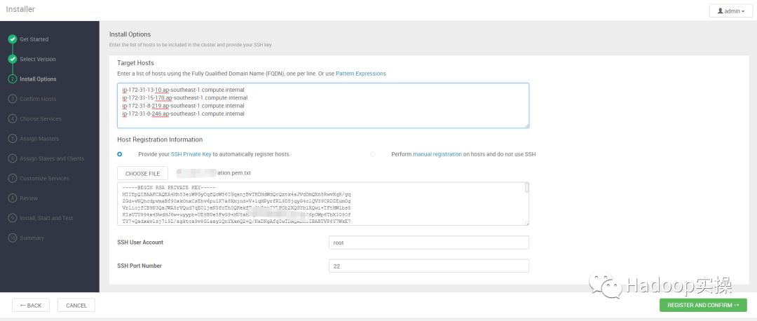 选择登录各个节点的私钥文件,点击REGISTER AND CONFIRM