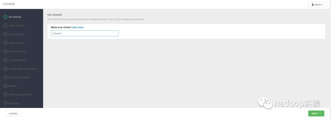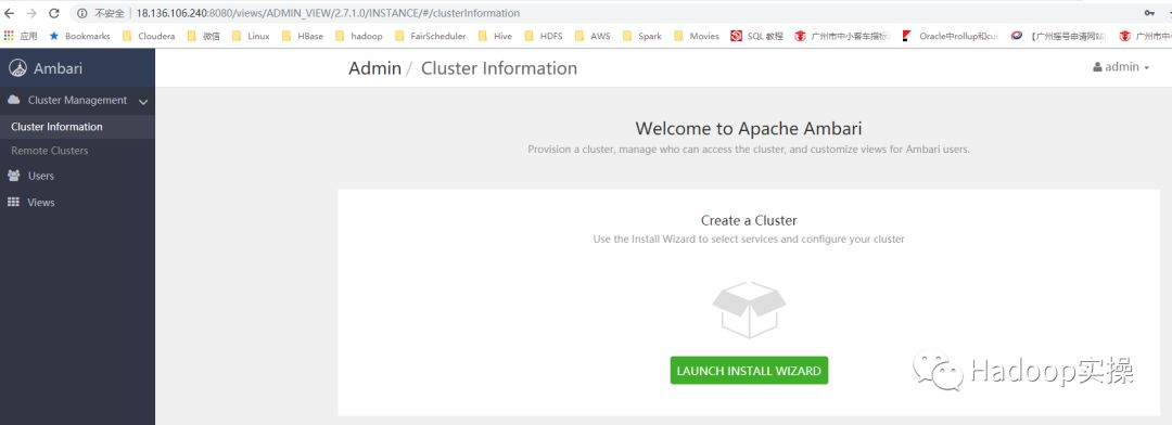 1.admin/admin登录到Ambari,点击“Launch Install Wizard”