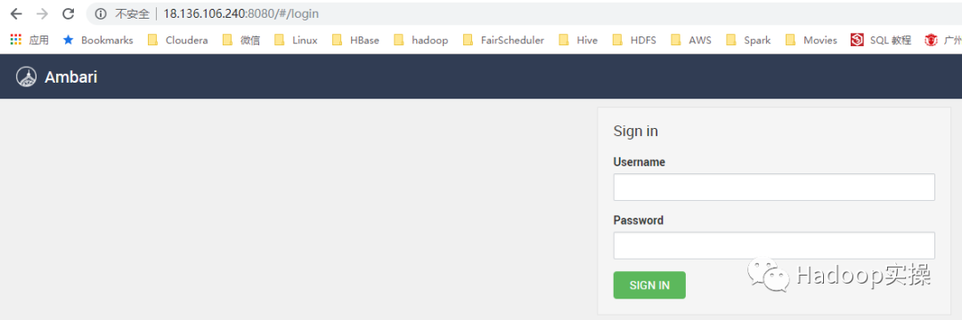 2.查看Ambari页面访问成功,http://18.136.106.240:8080/#/login