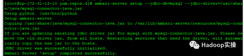 [root@ip-172-31-13-10 yum.repos.d]# ambari-server setup --jdbc-db=mysql --jdbc-driver=/usr/share/java/mysql-connector-java.jar
