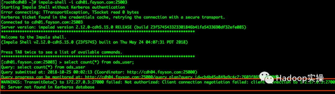 如:在KDC中,Impala Daemon的Kerberos principal格式为impala/@FAYSON.COM,而因为上述错误会导致使用的Kerberos principal为impala/127.23.4.9@FAYSON.COM,从而导致在Kerberos的Database中未找到该principal。
