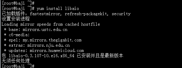 确保系统中有 libaio 包