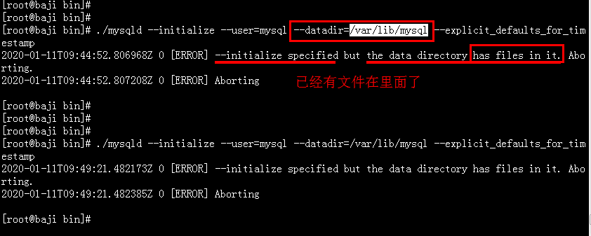 ./mysqld --initialize --user=mysql --datadir=/var/lib/mysql --explicit_defaults_for_timestamp