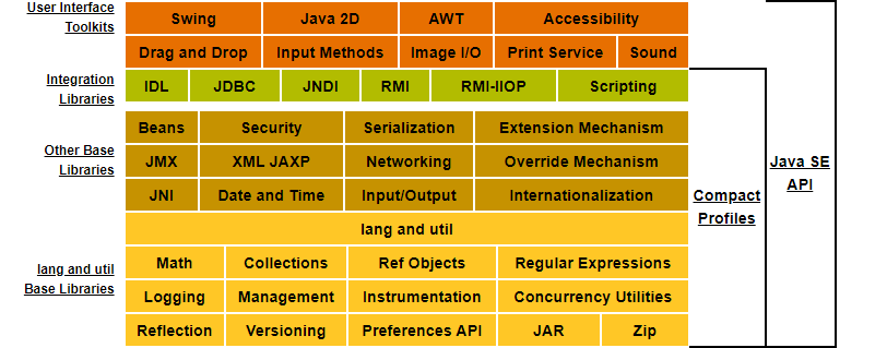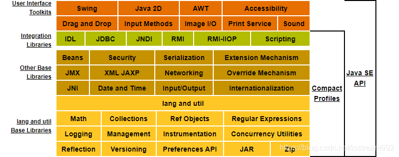 JDBC:JAVA数据库连接API RMI:远程方法调用API Security:安全调用API Override Mechanism:认可标准代替机制 ...(sun公司当年写的代码可供我们调用)