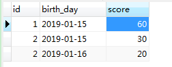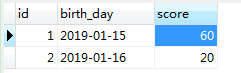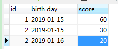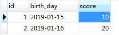 insert into kid_score(id, birth_day, score) values (1,'2019-01-15',10),(2,'2019-01-16',20);
