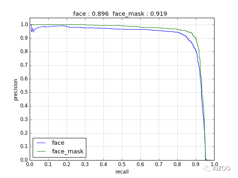 为了便于在浏览器部署模型,我们特意将模型设计的非常小,这导致一个弊端就是模型会牺牲一部分性能,但是速度会非常快,在普通CPU上也可以做到实时性。最终的模型在验证集上的Precision-Recall曲线如下图所示: