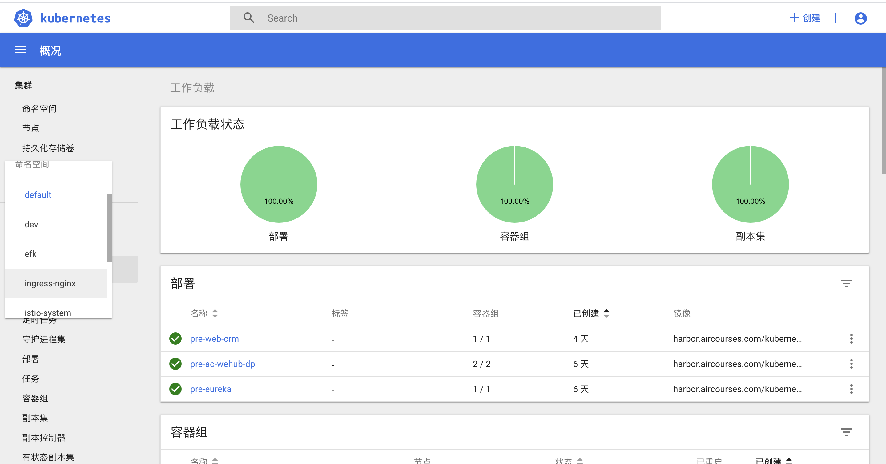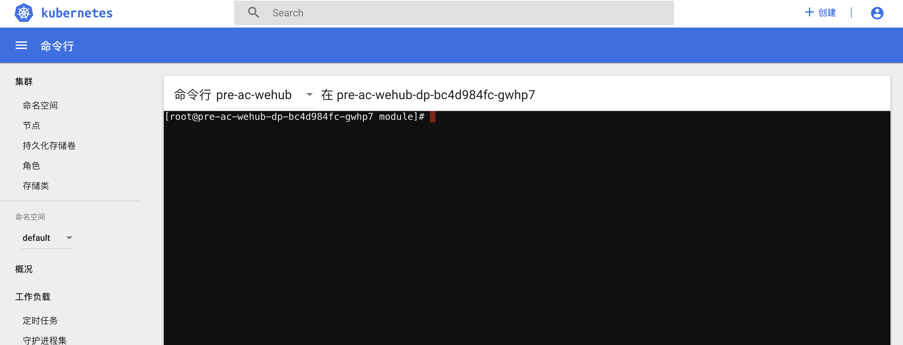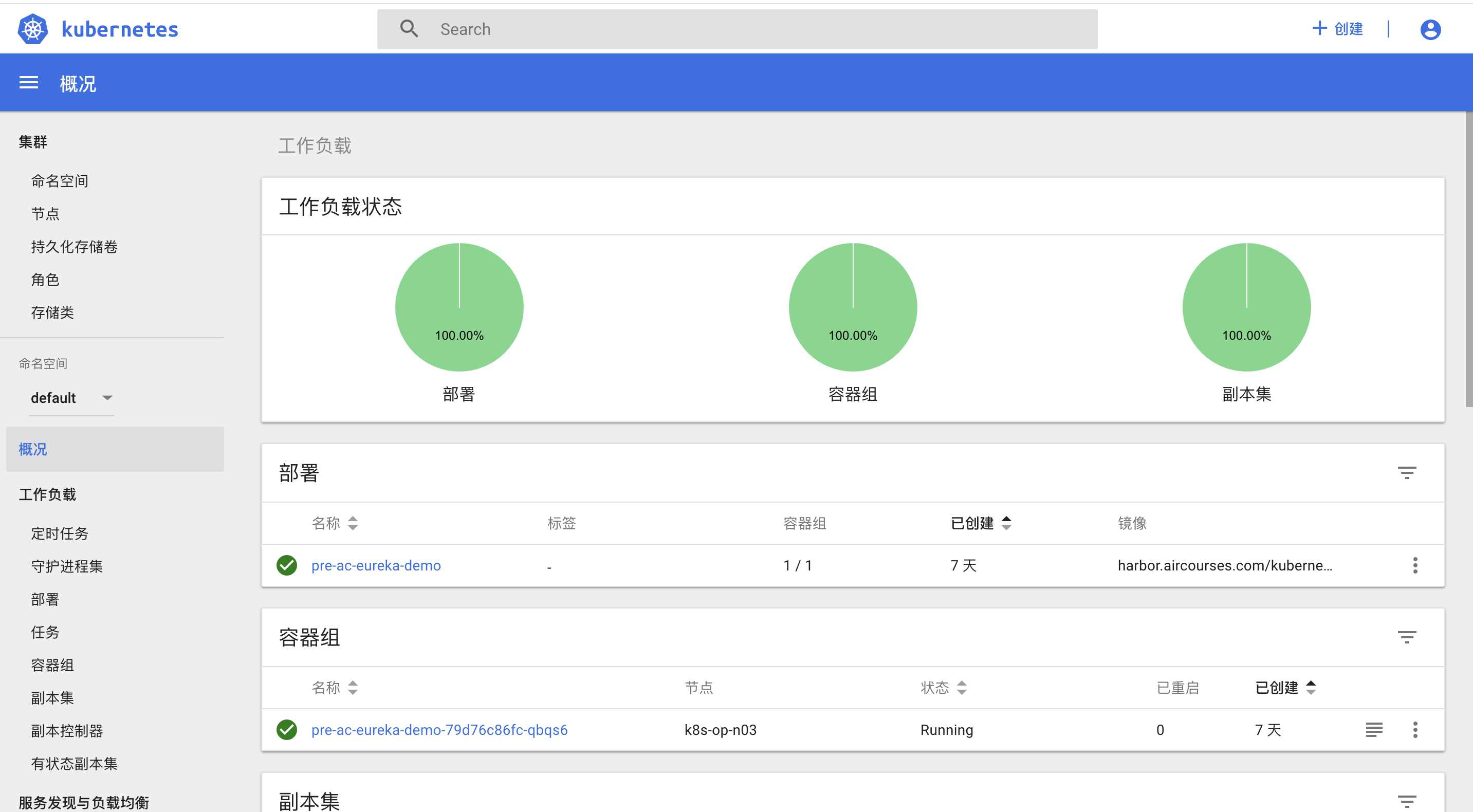 然后在dashboard登录页面上直接使用上面得到的token字符串即可登录,登录过后能看到下面的页面。