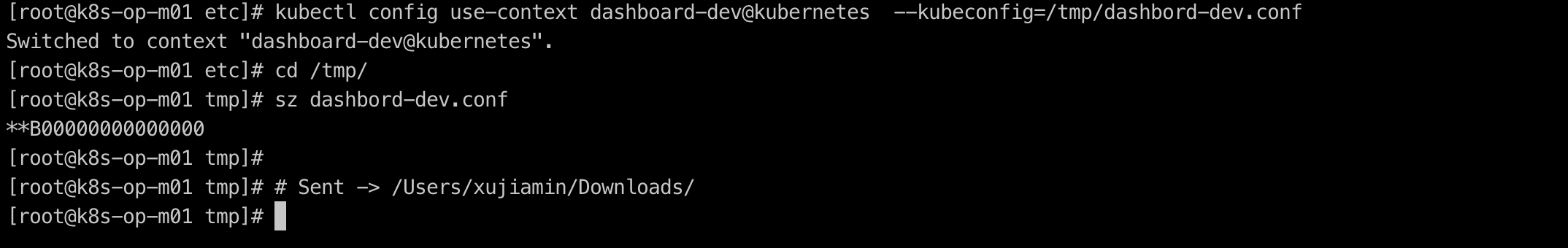 kubectl config set-context dashboard-dev@kubernetes --cluster=kubernetes --user=dashboard-dev --kubeconfig=/tmp/dashbord-dev.conf
