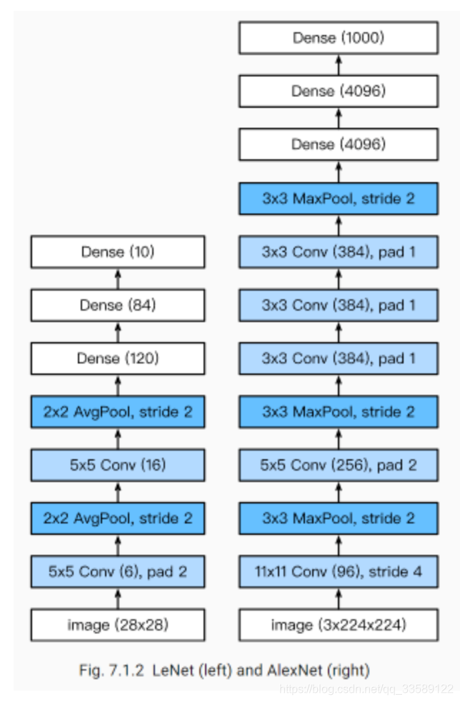 Block:数个相同的填充为1、窗口形状为3×3的卷积层,接上一个步幅为2、窗口形状为2×2的最大池化层。