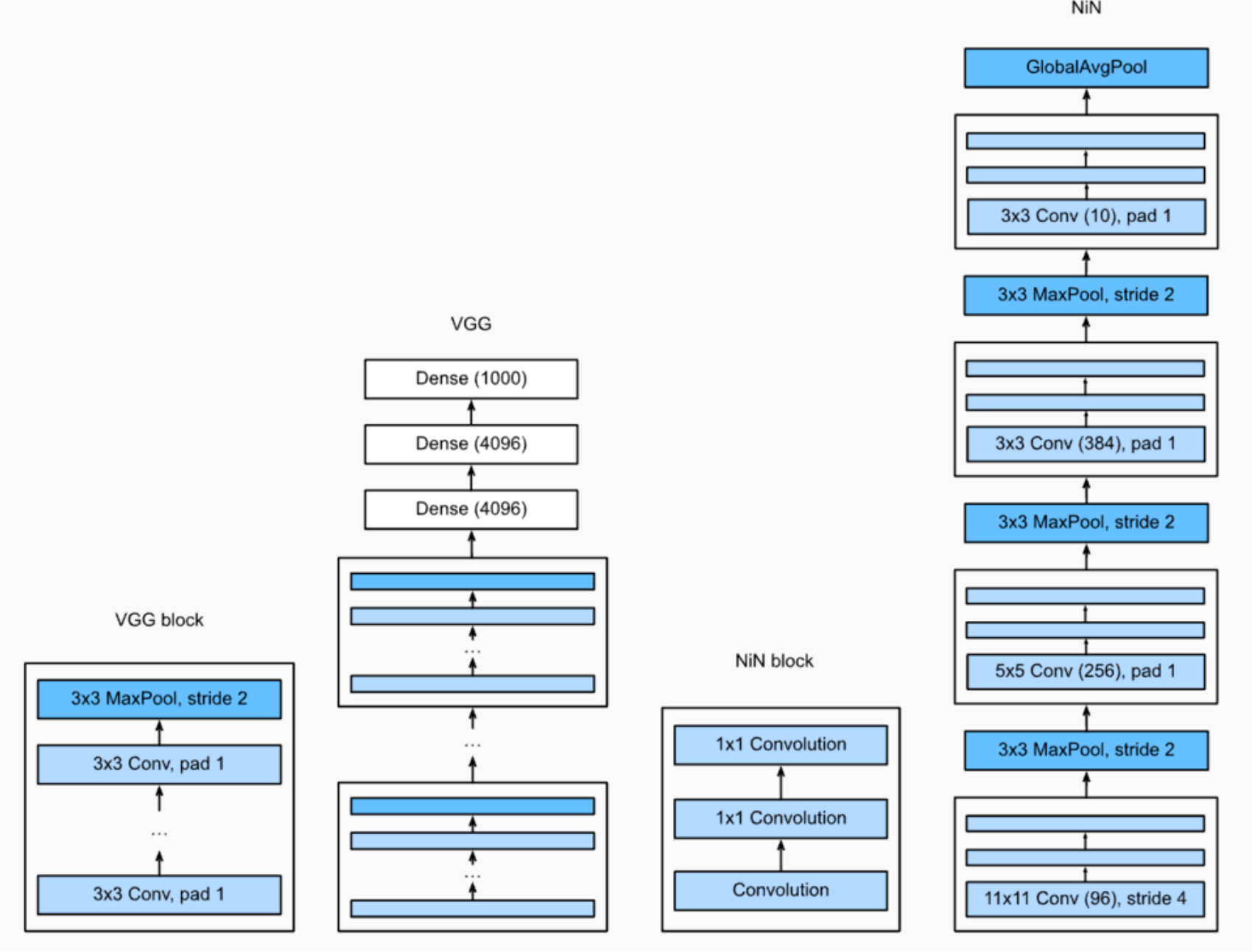 NiN的以上设计思想影响了后⾯⼀系列卷积神经⽹络的设计。
