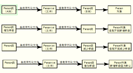 如果我们不希望通过编译来强制划分软件版本,即实现序列化接口的实体能够兼容先前版本,就需要显示的定义一个serialVersionUID,类型为long的变量。不修改这个变量值的序列化实体,都可以相互进行序列化和反序列化。