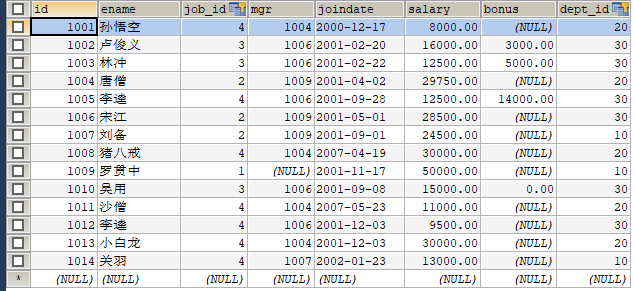我们先来看看emp表,如下: