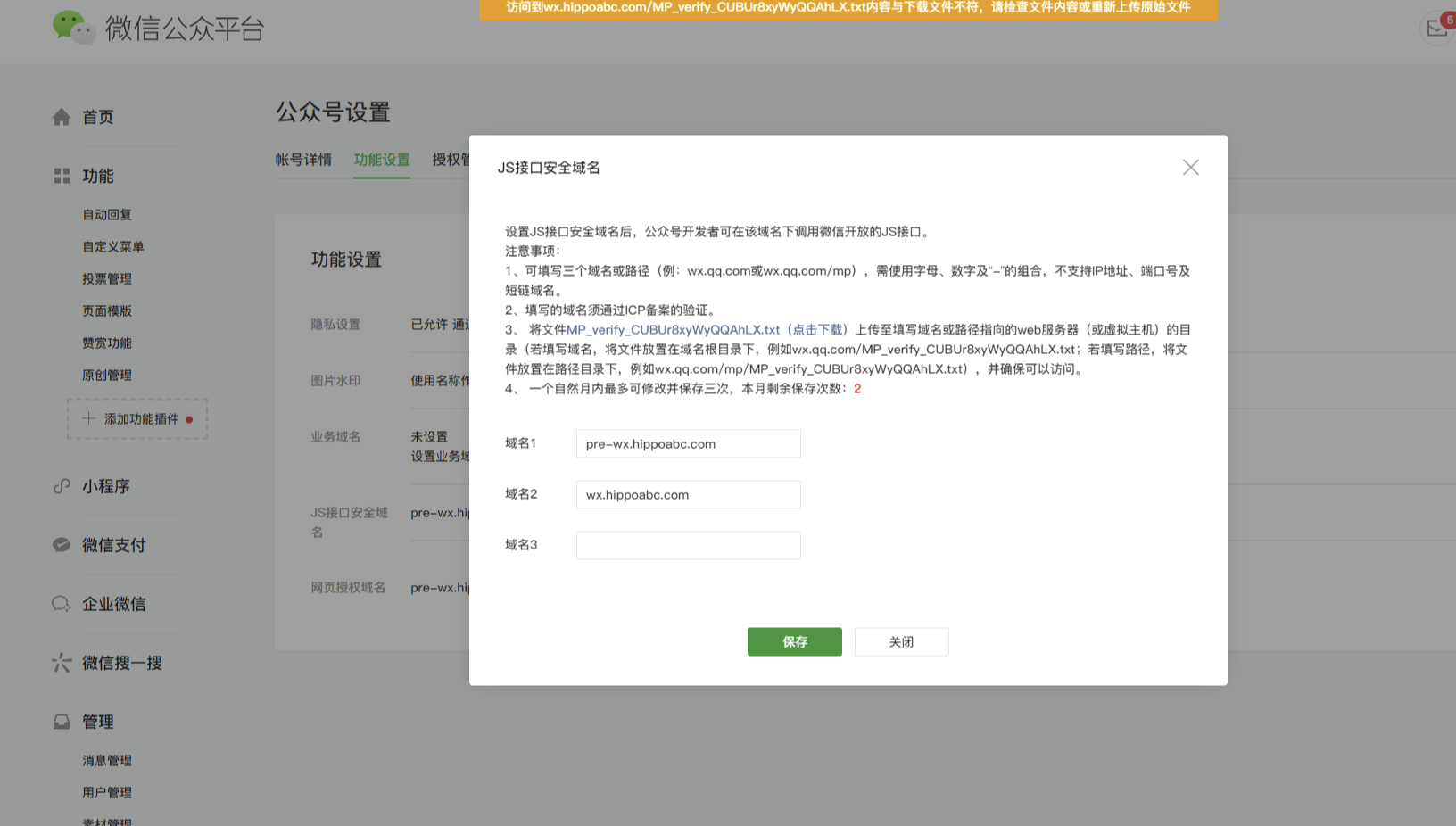 微信公众号授权 提示内容与下载文件不符,请检查文件内容或重新上传