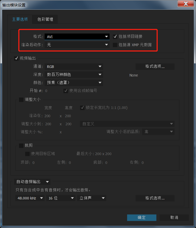 在输出模块设置中,将导出格式改成“PNG序列”。