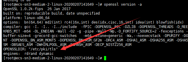 3、查看openssl的配置文件openssl.cnf的存放位置(即openssl的安装位置)(当前目录/root 当前用户root)