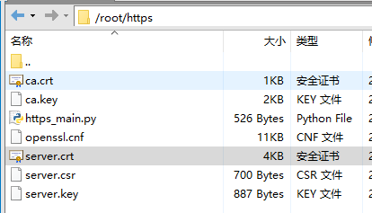 7、我们把server.crt和server.key放到 和 https_main.py文件一起执行一下试试
