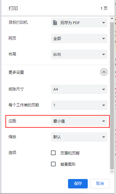 4. 边界打印不全解决:打印更多设置,边距设为 最小值