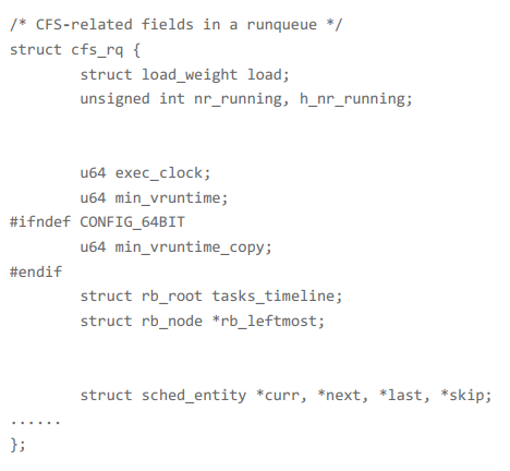 这里面的rb_root指向的就是红黑树的根节点,这个红黑树在CPU看起来就是一个队列,不断的取下一个应该运行的进程。