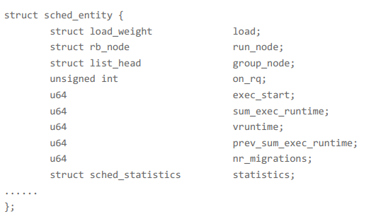 完全公平调度算法CFS,CFS会为每一个进程安排一个虚拟运行时间vruntime。如果一个进程在运行,随着时间的增长,进程的vruntime将不断增大,但没有得到执行的进行vruntime将不变。
