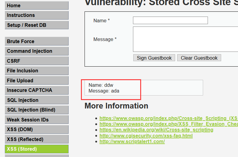 2.在信息栏目中输入:<script>alert(/cxr/)</script>,多次点击一直会存在