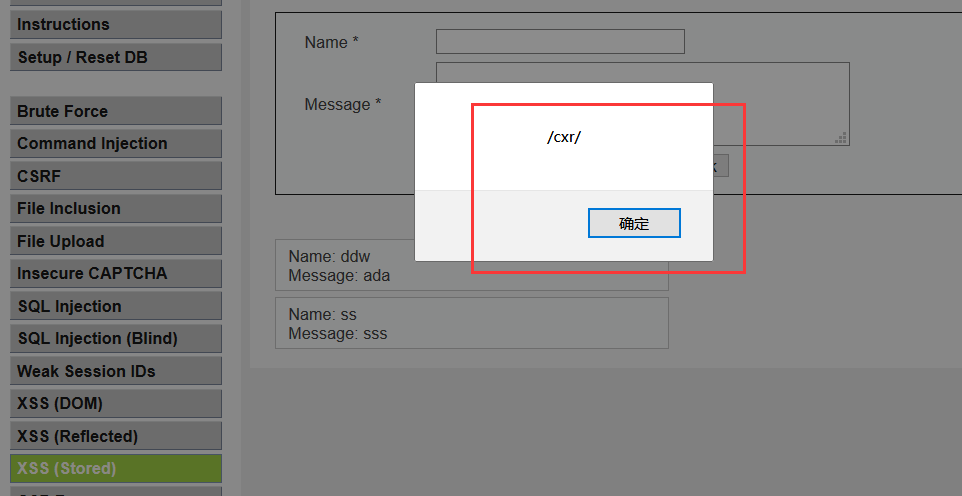 2.修改参数:<script>alert(/cxr/)</script>,该攻击和发射型攻击一样都是一次性攻击