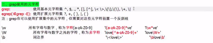以上的 \w \W \b 是grep里面的,不是正则里面的。