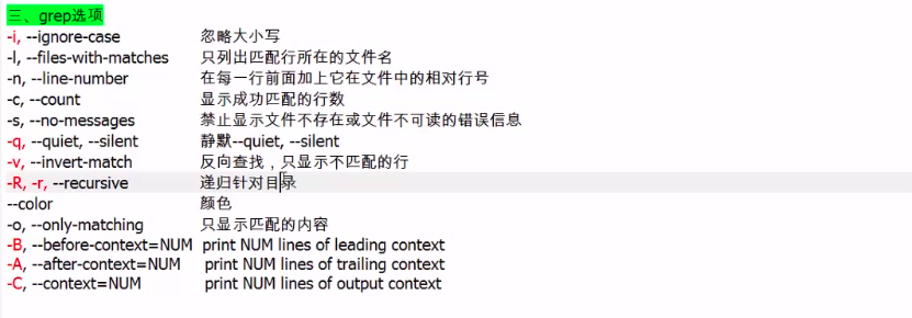 (三) grep命令出常用选项