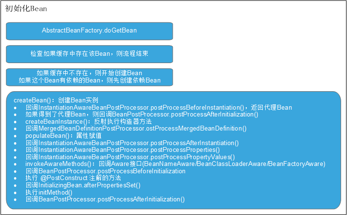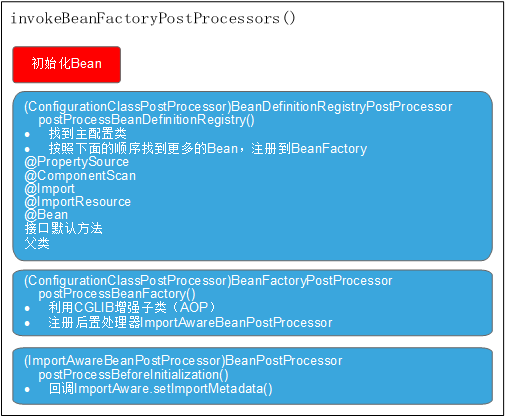 上面的每一步都会先在容器中==初始化 Bean==,然后去执行 BeanFactoryPostProcessor 的 postProcessBeanFactory() 方法。