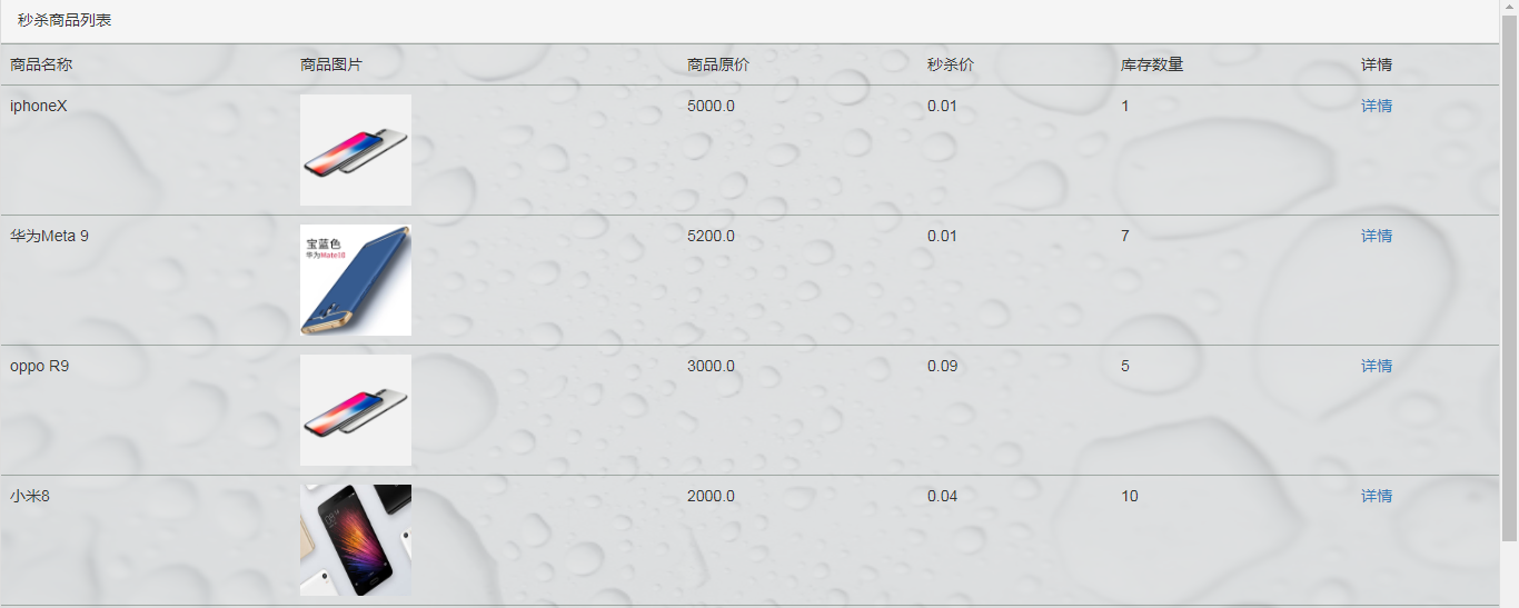 注:Thymeleaf其实是一个服务端的模板;RabbitMQ用来实现异步下单;使用redis做缓存(相比较于Memcached有比较多的一些优点,Redis可以做持久化);druid是阿里巴巴开发的连接池,好处是可以做监控,监控连接池里面的连接、最大连接多少、最大并发多少、最长的时间等特性
