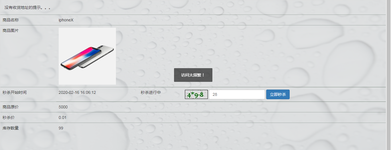 - 安全性优化:双重md5密码校验,秒杀接口地址的隐藏,接口限流防刷,数学公式验证码