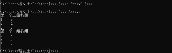 System.out.println("第一个二维数组");