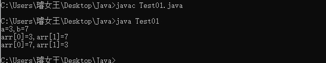 System.out.printf("arr[0]=%d,arr[1]=%d\n",arr[0],arr[1]);