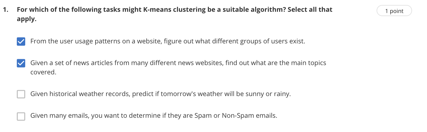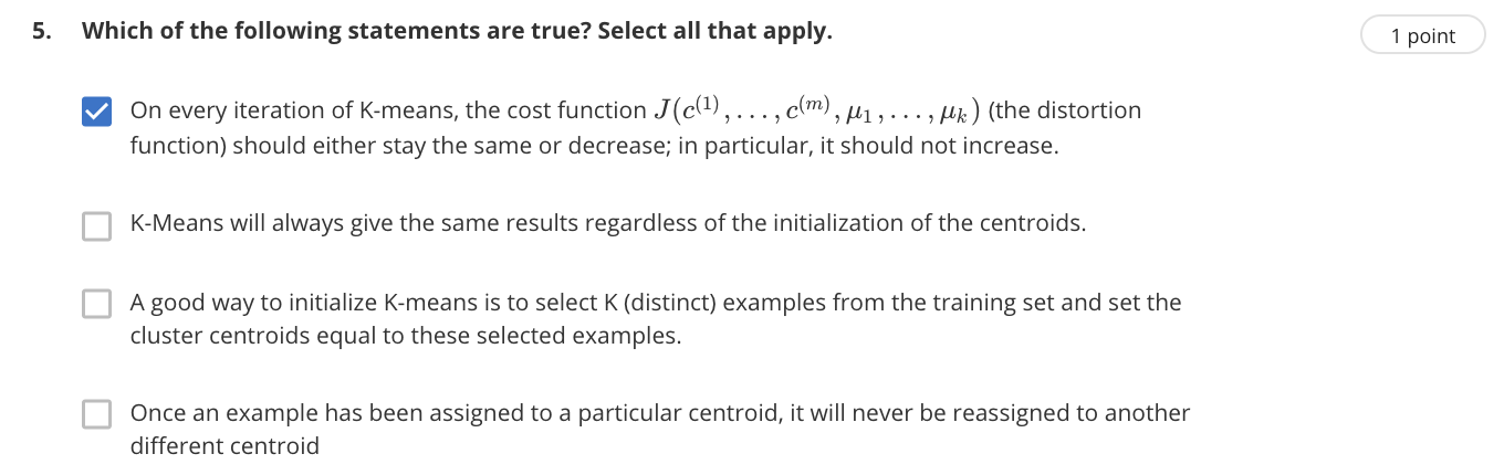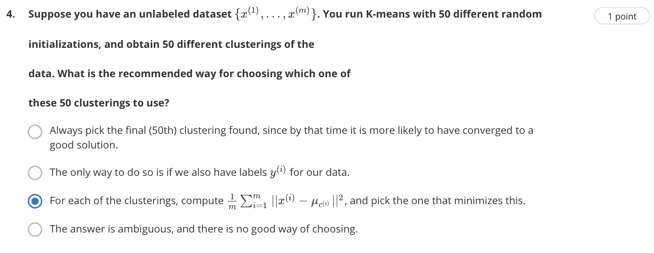 K-means algorithm 内嵌试题: