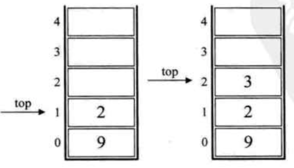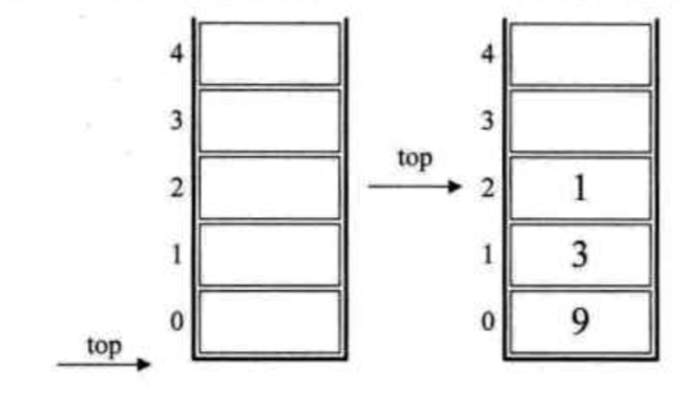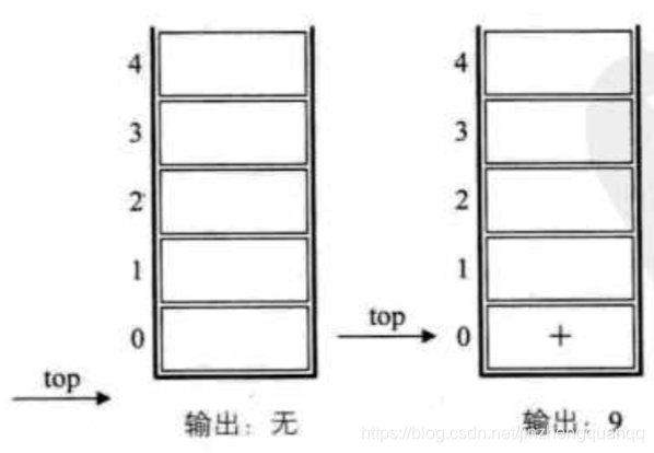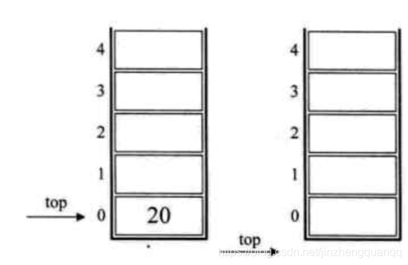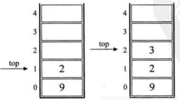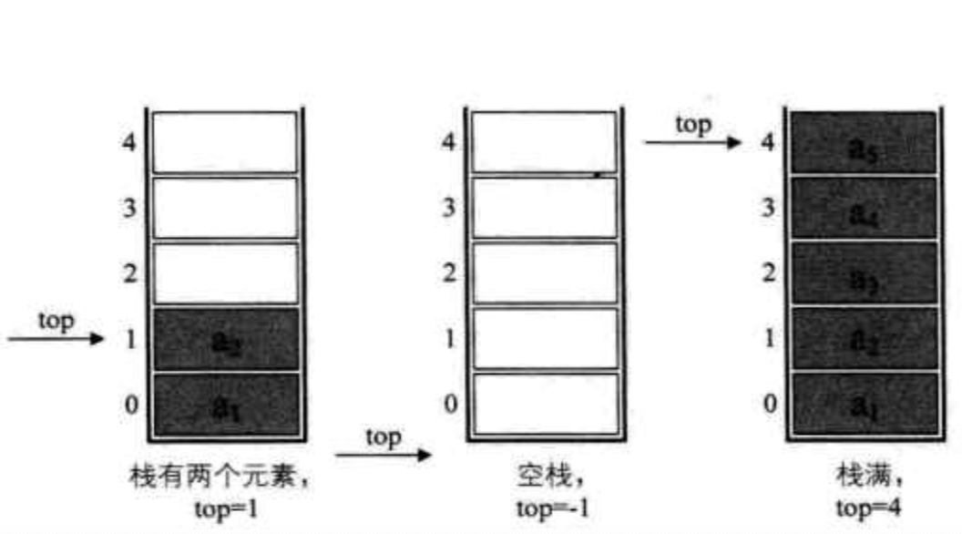 定义一个top变量指示栈顶元素在数组中的位置,若存储栈的长度为StackSize,则栈顶位置top必须小于StackSize,当栈存在一个元素时,top等于0,因此通常把空栈的判定条件定为top等于-1。