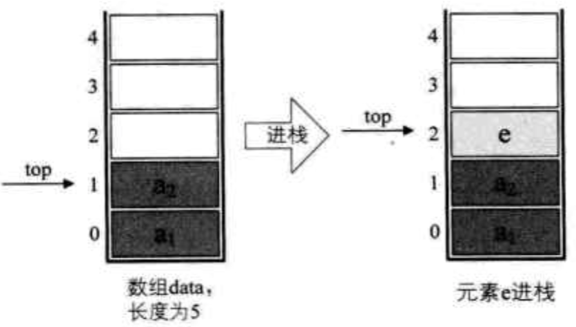 s->data[s->top] = e;/*将新插入元素赋值给栈顶空间*/