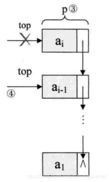 p = s->top; /*将栈顶结点赋值给p,如上图3*/