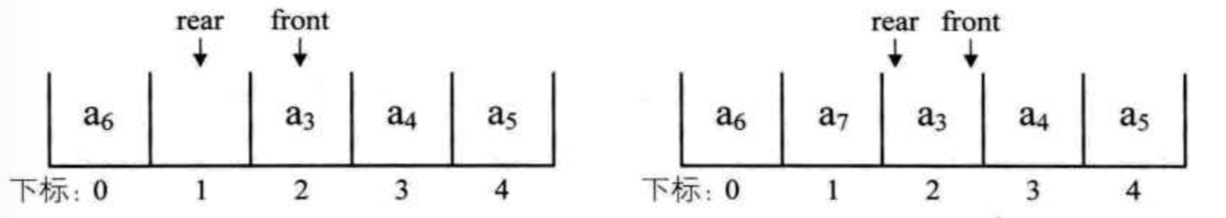 2,当队列空时,条件就是front=rear,当队列满时,修改其条件,保留一个元素空间,也局势说队列满时,数组中还有一个空闲单元。