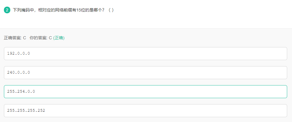 子网掩码共32位,前15位为1,后17位为0,转换下