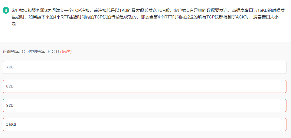 3RTT 结束,4KB->8KB(到达阈值,执行拥塞避免算法)