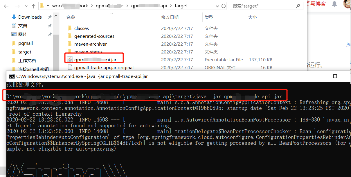 1.将可运行的项目整体打包,利用 开发工具idea 执行打包命令 mvn install 或者cmd 进入项目目录中 执行 mvn install 命令 整体打包 2. 然后进入 jar包所在目录,执行命令: java -jar qpmall-trad-api.jar 来源:CSDN作者:尼古拉斯__赵四链接:https://blog.csdn.net/shuzhupeng/article/details/104408666 标签 运行命令