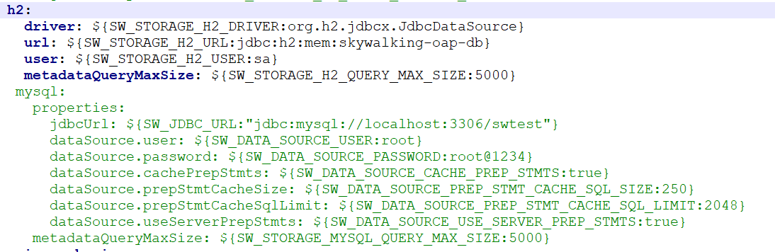 默认存储是使用的h2,配置文件:apache-skywalking-apm-6.6.0\apache-skywalking-apm-bin\config\application.yml