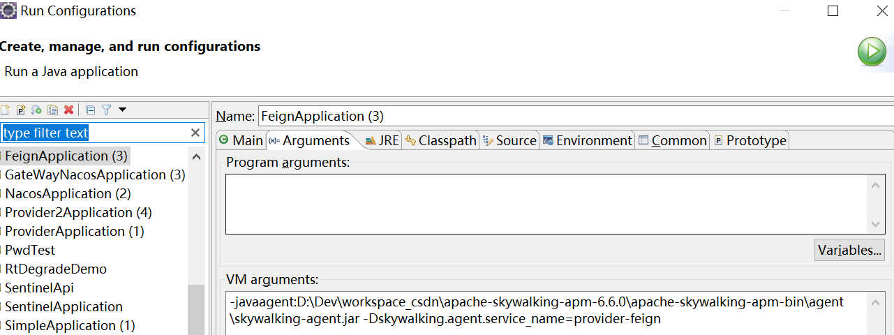 -javaagent:D:\Dev\workspace_csdn\apache-skywalking-apm-6.6.0\apache-skywalking-apm-bin\agent\skywalking-agent.jar -Dskywalking.agent.service_name=provider