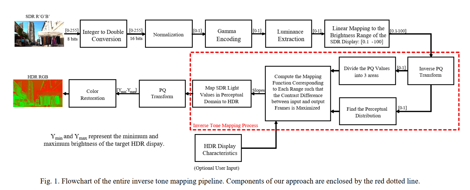 在这篇论文中,提出了一种高对比度的视频iTMO,它解决了现有方法的缺点,产生的HDR视频质量值得新兴的HDR技术的期望。 方法是内容自适应的,能够将SDR视频转换成任何目标动态范围的HDR视频。 方法遵循人类视觉系统(HVS)的特点,即对黑暗区域的亮度变化比明亮和正常区域更敏感,并相应地映射这些区域 。