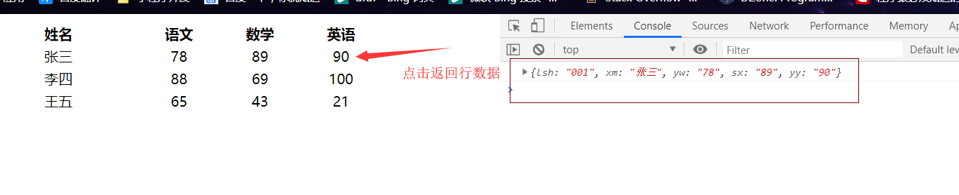 {lsh:'001',xm:'张三',yw:'78',sx:'89',yy:'90'},